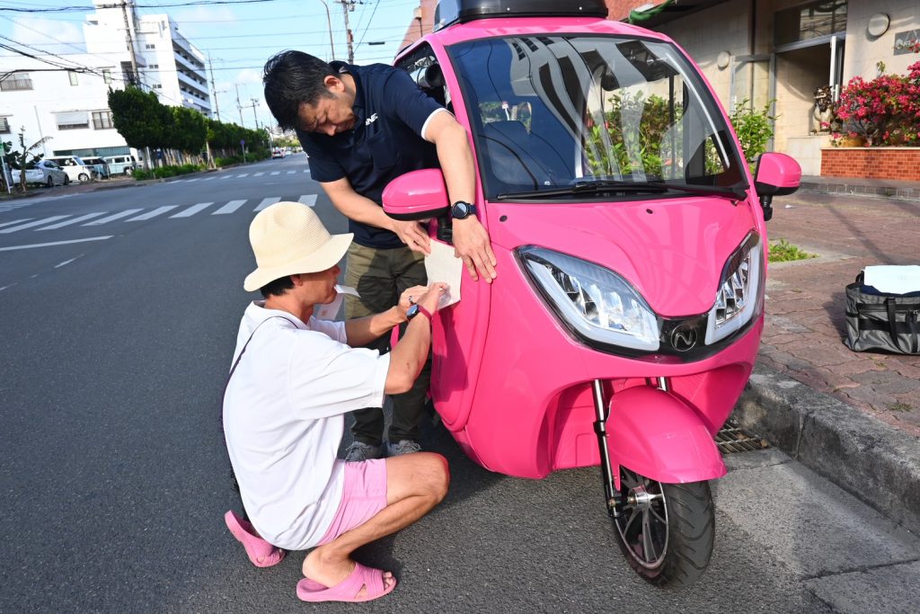 石垣島でピンクの e-NEO走行スタート!