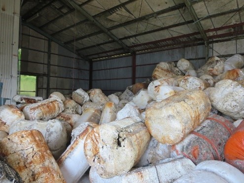 当社は、2007年から漂着する廃発泡ブイ(フロート)の減容に取り組む自治体に当社の発泡スチロール減容機「スチロス」を納入してきました。水産庁の外郭団体の公益財団法人海と渚環境美化・油濁対策機構と漂着ごみの多い国内15拠点で実証試験を繰り返し、約16,000本の漂着ブイ(フロート)を減容圧縮、燃料化に成功しています。