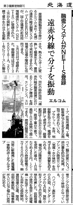 このたび、当社が開発した「遠赤外線融雪装置TOKERUMO(解けルモ)」が、国土交通省の新技術情報提供システム(NETIS)に登録されたことをお知らせいたします。