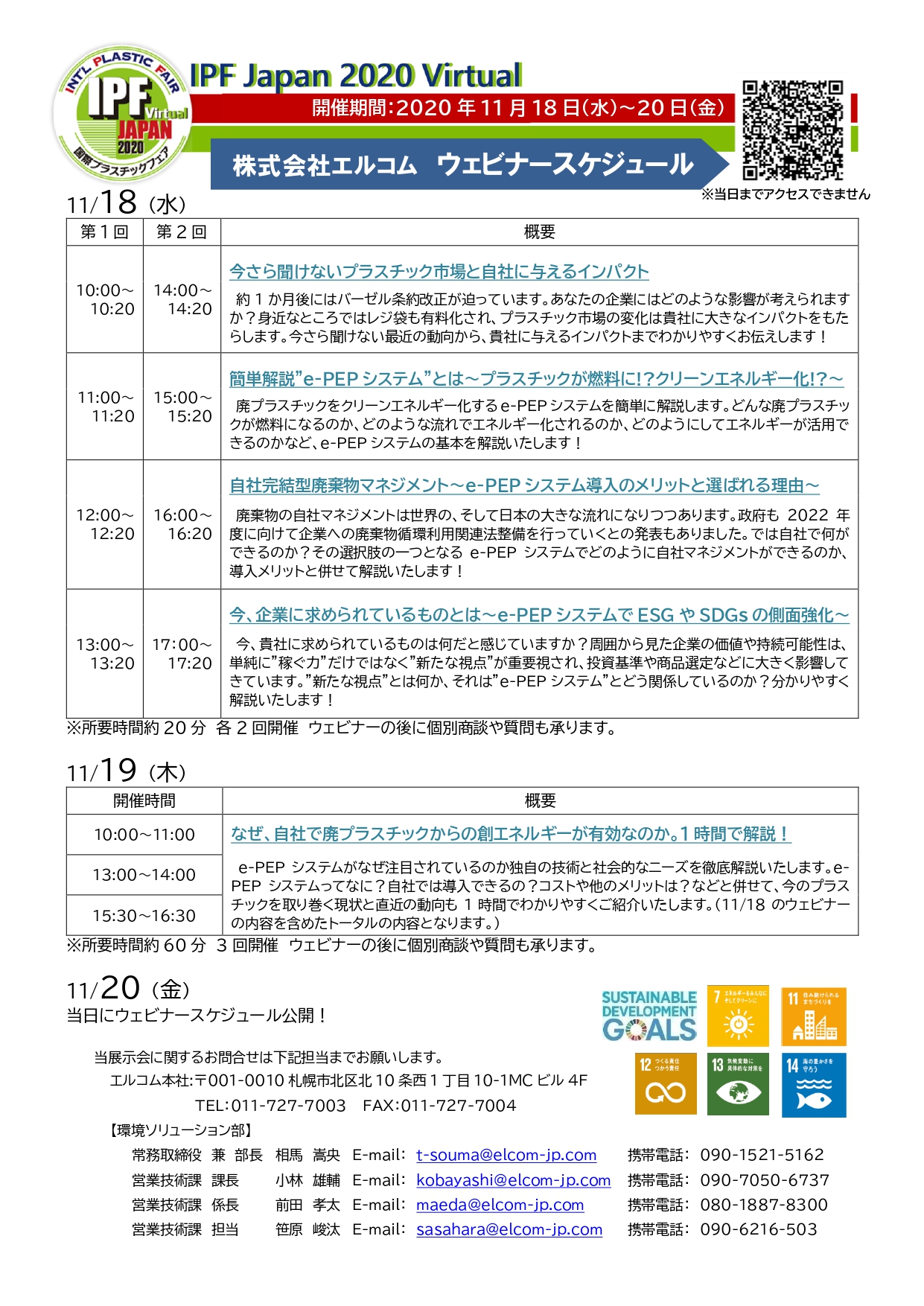 この度、2020年11月18日(水)10:00 ~ 11月20日(金)18:00 までの3日間 オンライン特設バーチャル展示会場「IPF Japan 2020 Virtual (国際プラスチックフェア バーチャル)」にて弊社のe-PEPシステム出展します。 出展ブースでは、e-PEPをはじめとした製品の紹介やカタログの掲載を始め、「今さら聞けないプラスチック市場の現状が自社に与える影響」、「e-PEPシステム導入までの流れ」、「e-PEPシステムを導入するメリット」、「企業力UPと廃棄物マネジメント」などをウェビナーでわかりやすくお伝えしたいと思います。ウェビナーの詳細とスケジュールが決まり次第、更新いたします。 10~18時は、弊社スタッフが常駐しご質問や導入に向けた具体的な相談まで対応させていただきます。 事前にご連絡いただきますと、開催期間中のご商談の設定も可能でございます。是非この機会にオンラインアクセスいただきたくご案内申し上げます。 皆さまのアクセスを心よりお待ちしております。( 事前来場者登録はこちらから https://ipfjapan.easyvirtualfair.com )