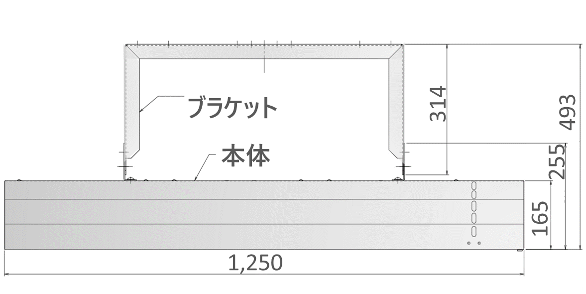 | 本体寸法(mm) | 幅1,250mm×奥行308mm×高さ255mm (取付ブラケット含む) |